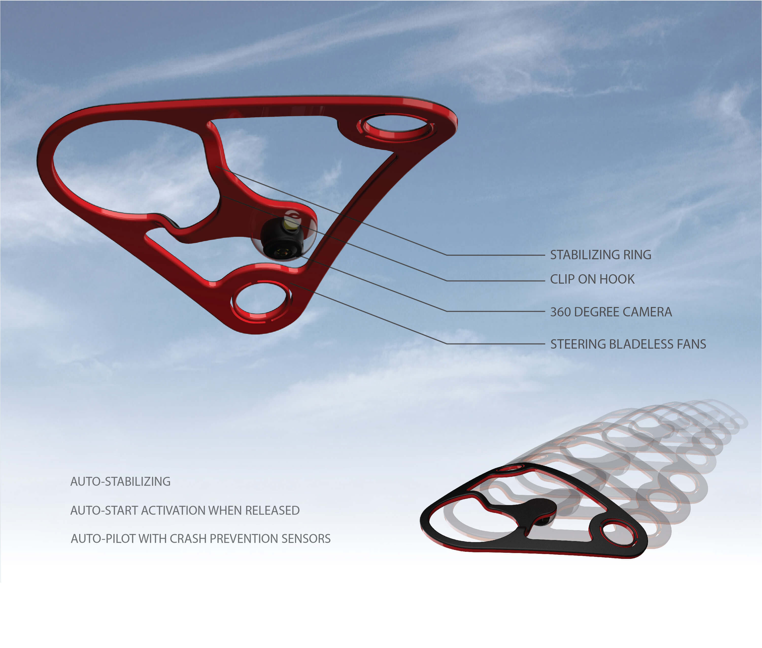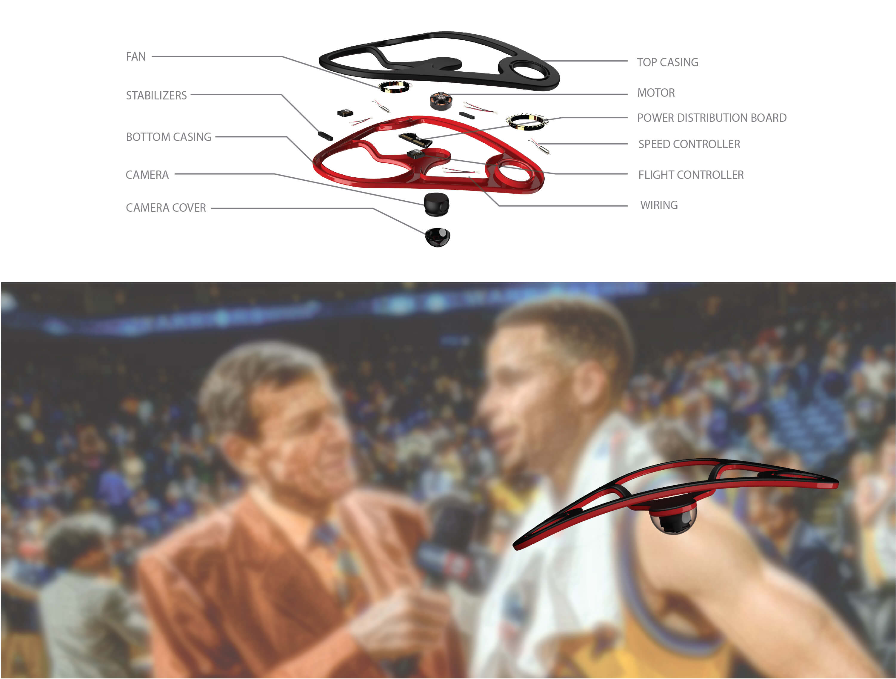 Compact without sacrificing performance. A companion designed for a sports reporter out in the field. A personal cameraman in every reporter's pocket. Bladeless fans for safety, 360 degree camera, and auto stabilizing technology makes sure no opportunity is missed.